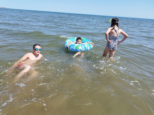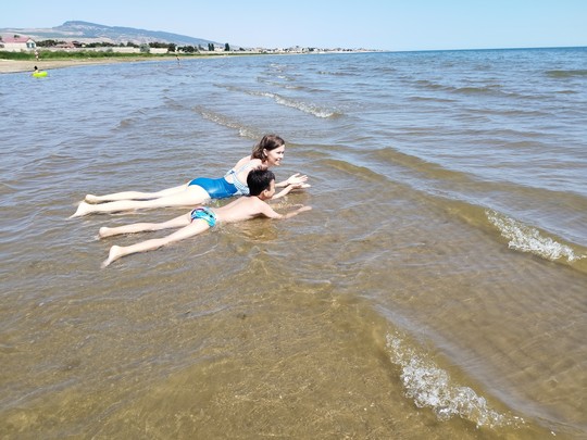 Вначале плавать было не по погоде, решили занятия сдвинуть к утру, чтобы ездить по живописным окрестностям и достопримечательностям. В последние 3 дня распогодилось. Нашли берега и море без водорослей. В 15 минутах ходьбы вдоль ровного побережья.